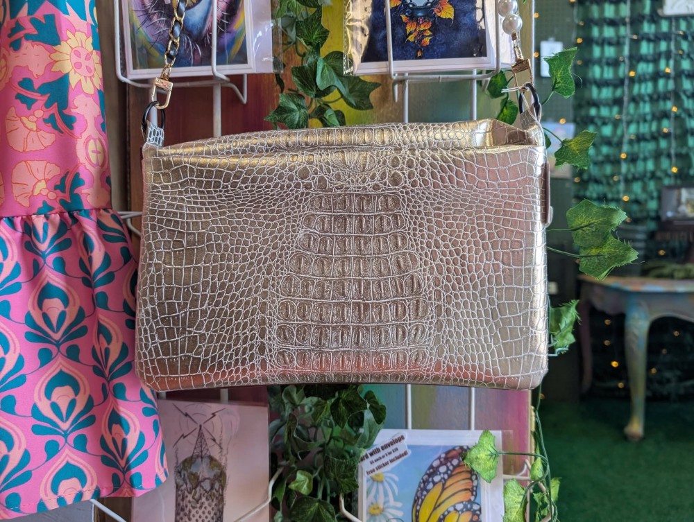 Gold/Maroon Faux Leather Purse
